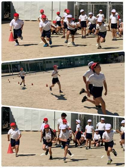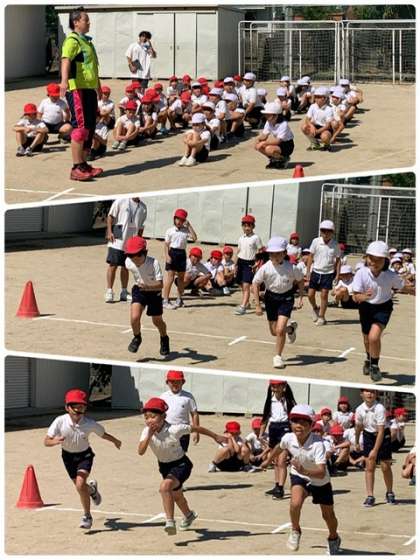 各学年で運動会の練習が始まっています。3年生は、トラックを使って個人走をします。2年生の時より距離も長くなります。スタートについて説明をしてもらってから、実際にコースを走ってみました。