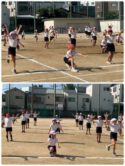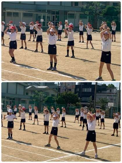 3・4年生も、合同で運動会の練習を進めています。集団演技の「ダンス」の体形移動を新しく覚えました。