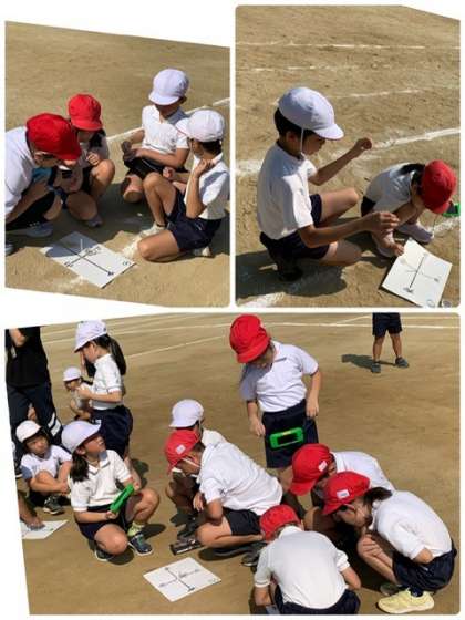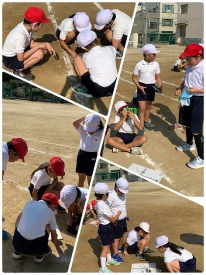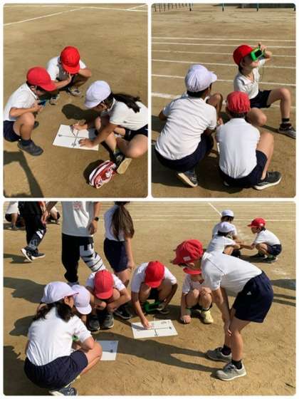 3年生 理科〜かげと太陽について学ぼう! 公開日 2024/10/03 更新日 2024/10/03 お知らせ 3年生は、理科の学習で、単元「かげと太陽」について学んでいます。実際に調べるために、方位磁石と遮光板を持って運動場に出てきました。時間を変えて、3回、太陽の位置を調べました。班で協力して取り組んでいます。 いいね(0)