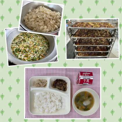 2日の給食〜ごはんがすすみます!〜 公開日 2024/10/03 更新日 2024/10/03 給 食 2日の給食は「ごはん、プルコギ、トック、もやしのナムル、牛乳」でした。 プルコギはいつも大好評です。しっかり味がついていて、ごはんがすすみます。「ごはんと一緒に食べたらおいしいよ」「ごはんいっぱい食べれそう」と、みんなに大好評でした。 いいね(0)