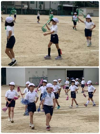 低学年〜運動会に向けて! 公開日 2024/10/11 更新日 2024/10/11 お知らせ 低学年が、集団演技「ダンス」の練習をしています。本番に使うスティックも持って練習をしています。太陽の光を反射してキラキラとしています。気持ちも高まってくるようです。 いいね(0)