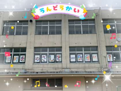 全校児童より募った意見をもとに、代表委員会で今年度の運動会のスローガンが決定されました。各学級で文字を分担して作成したスローガンが掲示されました。