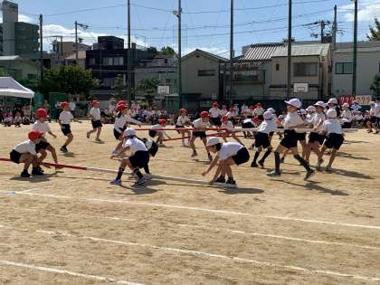 運動会〜勝利をめざして一致団結! 公開日 2024/10/23 更新日 2024/10/23 お知らせ 中学年の団体競技「ひっぱれ!!」です。最初は3年生です。赤組も白組も、力いっぱい頑張っています。 いいね(0)