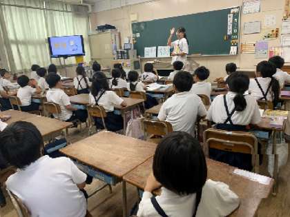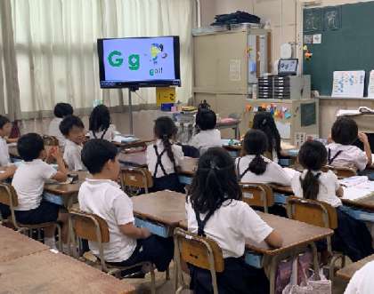 5時間目の前の帯時間を「パワーアップタイム」と位置づけ、英語のモジュール授業や基礎学習などに取り組んでいます。