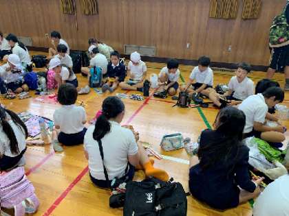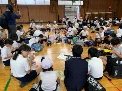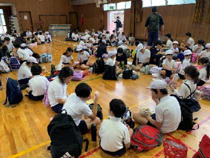 全校遠足 11月1日(金) 公開日 2024/11/01 更新日 2024/11/01 お知らせ オリエンテーリングは、どの班もみんなで協力して取り組んでいました。オリエンテーリングを終えて休憩しているときに、天候が少し心配な状況になってきたので、学校へ戻ってお弁当を食べることになりました。 せkっかくなので、講堂で・・縦割り班で食べています。用意していただいたお弁当を、とてもうれしそうに食べていました。 いいね(0)