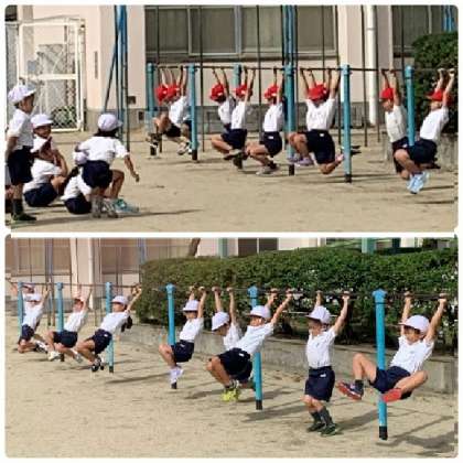 1年生 体育〜鉄棒に挑戦! 公開日 2024/11/06 更新日 2024/11/06 お知らせ 1年2組の体育の時間です。鉄棒のいろいろな技に挑戦しています。できた時には「アクテイブカード」にチェックしていきます。 いいね(0)