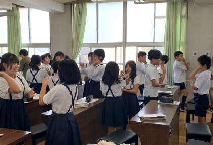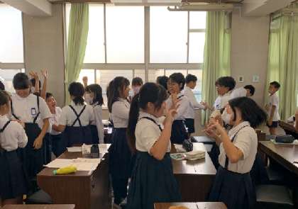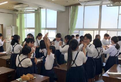 10月30日(水)、5年1組の音楽の授業を先生方に見ていただきました。今日の学習のめあては、「曲のおもしろいところを見つけてきこう」です。5年生は、音楽活動を進めるにあたり、常時活動として2人組で行う手遊び「アルプス一万尺ゲーム」を行っています。ゲーム感覚で楽しみながら拍感を養うことをねらいとしており、リズムや拍を聴き取る学習活動につなげていこうと考えています。この日の授業でも、最初に、常時活動「アルプス一万尺」をして手遊びのリズムを確認しました。笑顔で楽しんでいます!