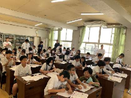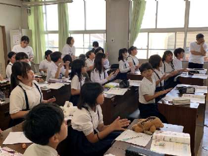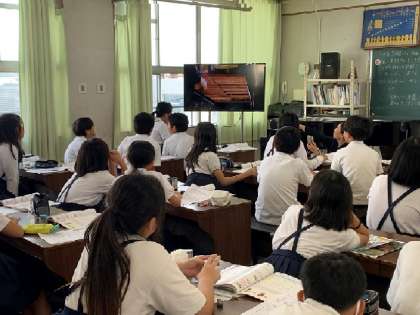自分なりの聴き方で、面白いと思ったところ、そして、その理由をワークシートに書き、友だちと交流しました。最初は、どう表現しようか迷ていた児童も、よく考え、自分の感じたことをしっかりと記入していました。授業の最後は、オーケストラが演奏している動画を観ました。特に、木琴の演奏の様子に、惹きつけられていました。この後に続く授業では、小道具のスカーフを持って動かしながら、リズムや旋律に合った動きをさせることで、曲の特徴や面白さを体感させたいとも計画しています。