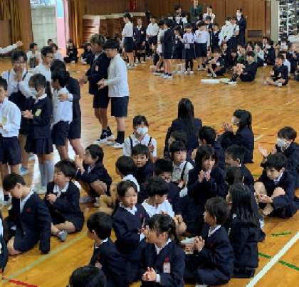 児童集会の後で〜全校遠足のオリエンテーリングの成績発表がありました!