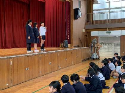 児童集会の後で〜5年生より「服のチカラ」プロジェクトの報告がありました!