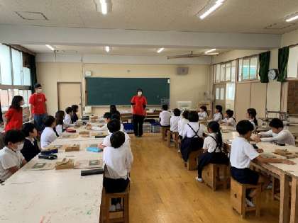4年生 出前授業〜クラフトパークの方に来ていただきました! 公開日 2024/11/17 更新日 2024/11/17 お知らせ 4年1組の活動の様子です。素材を磨いて、柄の部分の模様を選んでいます。 いいね(0)