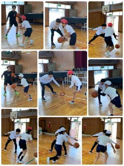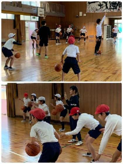 6年生「小学生ふれあい事業」〜バスケットボールの指導をしていただきました! 公開日 2024/11/18 更新日 2024/11/18 お知らせ ドリブルやシュートの練習もしました。ドリブルの時に下を向かないように・・片手はドリブル、もう一方の手でコーチとじゃんけん・・という練習をしたり、シュート練習では、本番のようにガードの動きが入り、少しだけ本格的な練習を味わうことができました。 いいね(0)