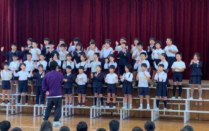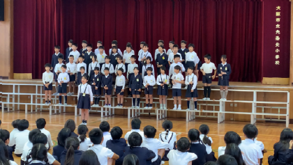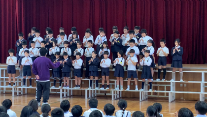 児童集会 11月15日(金) 公開日 2024/11/18 更新日 2024/11/18 お知らせ 11月15日(金)の児童集会は、3年生による「音楽発表」でした。リコーダー奏と歌を、全校児童の前で発表しました。歌は、手話も交えて歌っています。とてもよく頑張っています!3年生は、九条北フェステイバルでも発表することになっています。 3年生の「音楽発表」に続いて、子ども会のキックベースボールチームのオリックス杯の表彰もしました。これからの活躍も期待しています! いいね(0)