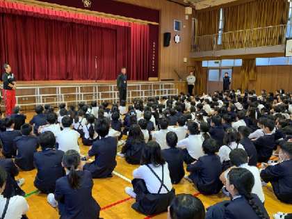11月18日(月)の児童朝会は、講堂で行いました。最初に、校長先生より、前日の九条北フェステイバルでの3年生の発表について、西区長さんや地域の方から褒めていただいた旨の話がありました。そして、今週は「読書週間」で、この機会に、よりたくさんの本を読んで、たくさんの宝を味わってほしいと話をされました。(詳しくは「校長室だより NO34」をご覧ください。)次に、生活指導担当の先生からは、11月の生活目標「相手の気持ちを考えて行動しよう」に関わった話をしていただきました。