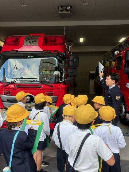3年生 社会見学〜西消防署へ行ってきました! 公開日 2024/11/20 更新日 2024/11/20 お知らせ 11月18日(月)、3年生は社会見学で西消防署へ行ってきました。西消防署では、消防車やはしご車などの見学をさせてもらいました。その機能なども、いろいろ教えていただき、とても勉強になりました。 いいね(0)
