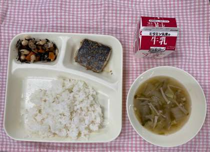 19日は「ごはん、さごしのごまじょうゆかけ、すまし汁、大豆の煮もの、牛乳」でした。この日はPTA試食会でした。今回は17名の保護者のみなさんが参加してくださり、楽しいひと時となりました。ありがとうございました。