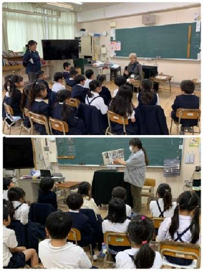 秋のおはなし会 11月26日(火) 公開日 2024/11/27 更新日 2024/11/27 お知らせ 11月26日(火)、大阪市立中央図書館より、ボランティアグループ「キップコップ」の皆様にお越しいただき、「秋のおはなし会」を実施しました。1年生から6年生まで、各学年それぞれに合わせた内容で実施してくださいました。 1〜3年生の様子です。「おはなし」「えほん」「かみしばい」「おおがたえほん」など、いろいろ組み合わせて実施していただきました。 いいね(0)