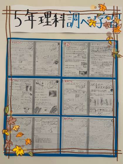 5・6年生〜「自主学習・調べ学習」を掲示しています! 公開日 2024/12/04 更新日 2024/12/04 お知らせ 5年生・6年生の「自主学習・調べ学習」が、教室前の廊下に掲示されています。それぞれが工夫されていて感心しました。 いいね(0)
