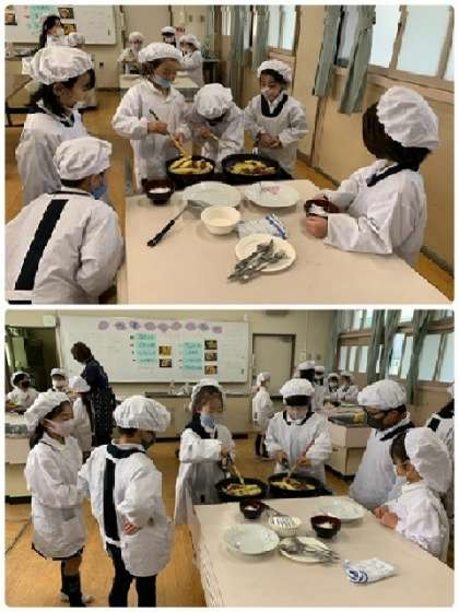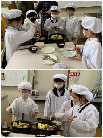 2年生〜さつまいもパーティー! 公開日 2024/12/06 更新日 2024/12/06 お知らせ 12月5日(木)、2年生は、学習園で育てて収穫した「さつまいも」を調理して「さつまいもパーティー」をしました。最初に、先生から調理手順を教えてもらいました。グループで協力して、「カリカリおさつポテト」を作ります。 いいね(0)