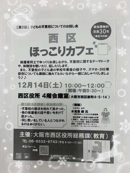 12月14日(土)10:00〜子どもの不登校についてのお話し会を開催します。