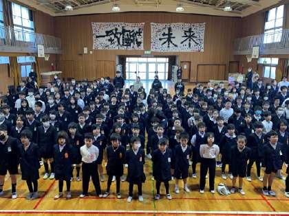 1月8日(水)、九条北小学校の始業式です。冬休みの宿題を持って、児童たちは登校してきました。講堂で実施した始業式では、最初に。校長先生より、新年に当たってのお話がありました。(詳しくは、「校長室だより NO38」をご覧ください)次に、生活指導担当の先生からは、「冬休み中に、みんなが無事に過ごしたようで安心ているけれど、もし、何か心配なことがあれば、担任の先生に知らせてほしい」と話がありました。さらに、1月の生活目標は「かぜに負けないじょうぶな体をつくろう」であることも伝えられました。最後に、「3学期は短く、すぐに過ぎ去ってしまうけれど、次の学年に向けて成長する大切な時期である」ことも伝えられました。最後に、全員で校歌を歌って、始業式を終了しました。