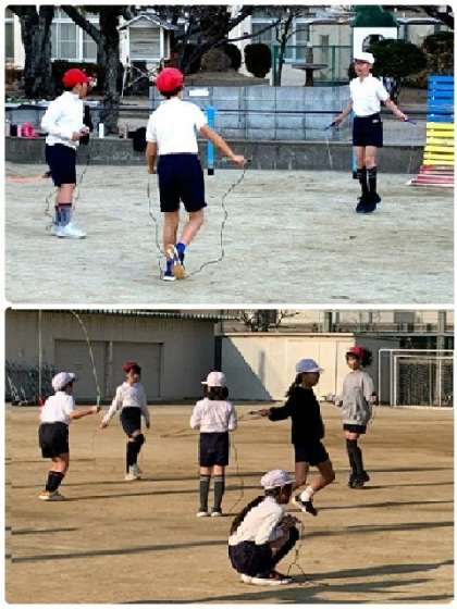 4年生 体育〜なわとびにも挑戦! 公開日 2025/01/14 更新日 2025/01/14 お知らせ 4年生の体育の時間です。1・2組合同で実施しています。4年生は、「かけ足」だけでなく「なわとび」にも挑戦しています。自分で決めた技をの練習をしています。 いいね(0)