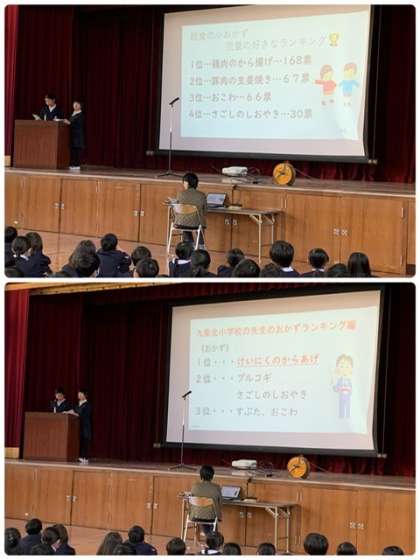 給食委員会による発表〜「給食週間〜かんしゃしてたべよう〜」!