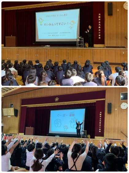 1月24日(金)、学校保健委員会を実施しました。今年の学校保健委員会には、上級睡眠健康指導士 青木 勝則 様を講師にお招きし、「すいみんってすごい」をテーマに進めました。環境・健康委員会の児童の紹介で登場した青木先生、とてもパワフルで児童の気持ちを引き付けていました。