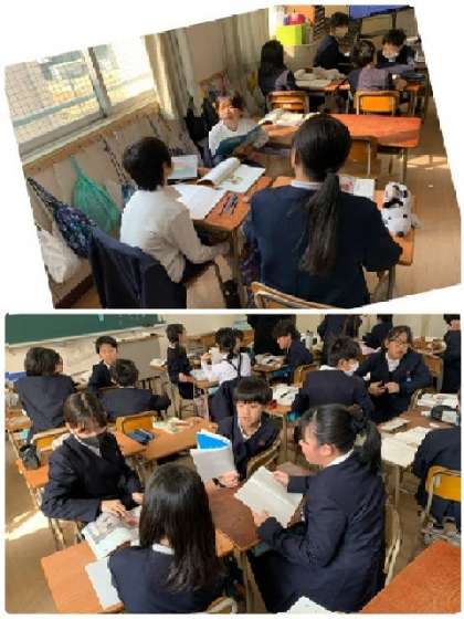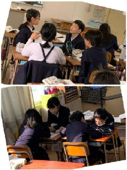 議題を「ロボットは進化す続けるべきか」として、これまで学習したことや自分の経験をもとに、まずは自分の考えを整理し、ノートに書き込みました。そこから班で意見交流をしています。班での話し合いの様子を見ると、根拠を説明して自分の意見を伝えています。友だちの意見は、うなずきながら聞き、その意見に対して感じたこと・思ったことも伝えていました。