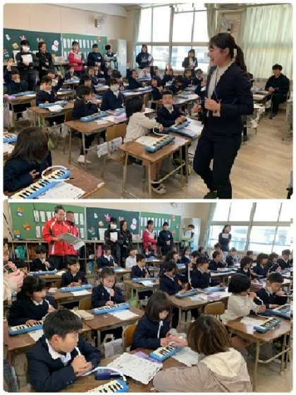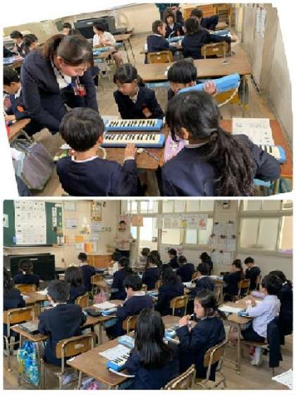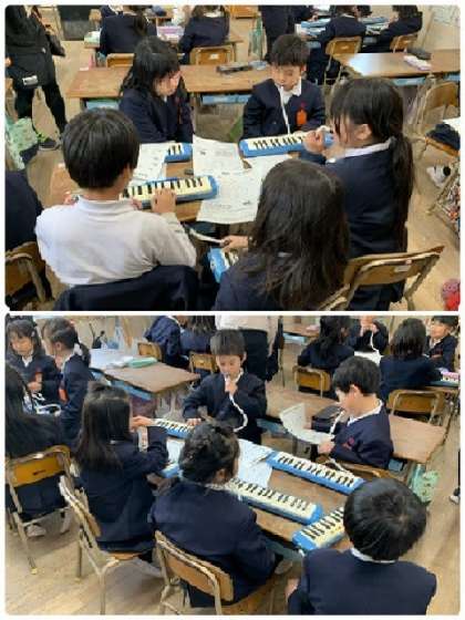 研究の日 2年1組〜名前でせんりつあそび! 公開日 2025/02/06 更新日 2025/02/06 お知らせ グループ交流で、自分が作った旋律を聴いてもらって、感想やアドバイス交換をしています。そして最後は、みんなの前で何人かの旋律を発表してくれました。どの児童の旋律も、とても工夫されていて、聞いているほうも楽しくなってきました。次の授業では、「”お名前は”発表会」をするそうです。それの楽しみですね!! いいね(0)