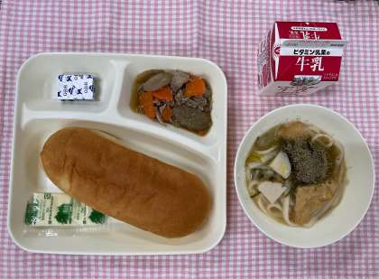 12日の給食 公開日 2025/02/13 更新日 2025/02/13 給 食 12日の給食は「コッペパン、豚肉とごぼうの煮もの、なにわうどん、固形チーズ、マーガリン、牛乳」でした。なにわうどんは、甘辛く煮たうすあげと、食べる時に自分で入れるとろろこんぶが子どもに好評です。食缶を開けた時にだしのいい香りがふわっと広がりました。 いいね(0)