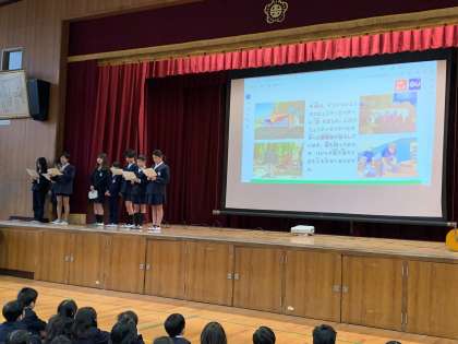 児童朝会〜「“届けよう、服のチカラ”プロジェクト」の感謝状が届きました!