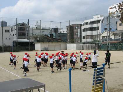 1年生の体育の授業で、1組と2組が合同で活動を行いました。生徒たちは元気いっぱいにリズムに合わせて体を動かし、楽しい時間を過ごしました。