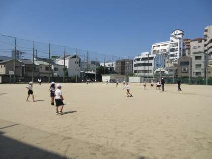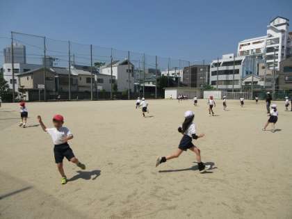 運動場をいっぱいに使って、鬼ごっこをしました。