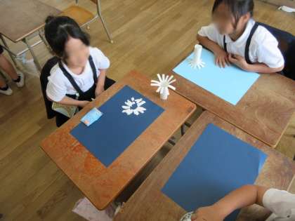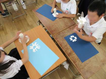 2年生 図画工作 公開日 2025/05/13 更新日 2025/05/13 お知らせ 手作りのスタンプでタンポポを表現しました。 どうすれば表したいようにできるか、絵の具の付け方や、スタンプの押し方、押す場所を考えながら活動していました。 いいね(0)