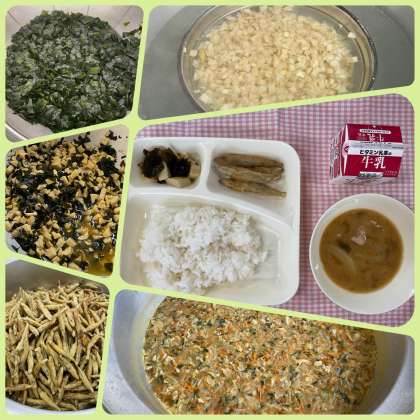 5月14日の給食 公開日 2025/05/14 更新日 2025/05/14 給 食 今日の給食は「ごはん、きびなごてんぷら、みそ汁、わかたけ煮、牛乳」でした。きびなごてんぷらはカラッと揚がったきびなごにしょうゆのタレをかけています。丸ごと食べてカルシウムをしっかりとることができます。わかたけ煮はわかめとたけのこをあっさり風味に煮ています。わかめが柔らかくなりすぎないように気をつけながら仕上げてもらいました。 いいね(0)