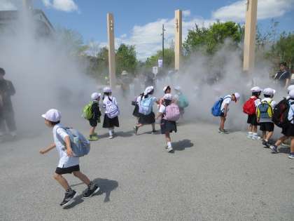 いのちパークでは、30分おきにミストが吹き出します。