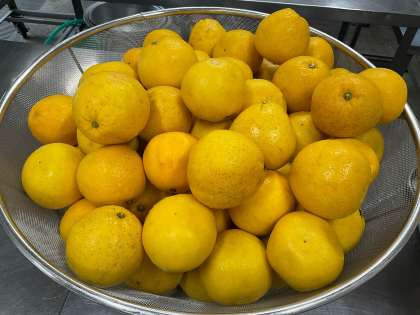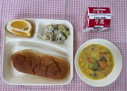 今日の給食は「おさつパン、鶏肉とコーンのシチュー、キャベツのひじきドレッシング、かわちばんかん、牛乳」でした。シチューにはラッキーにんじんがたくさん!見つけた子は大喜びでした。デザートのかわちばんかんは、さわやかな甘さがあり、苦みはそれほどありません。ですが、皮をむくのが大変なので、低学年は皮のむき方の動画を見てからチャレンジしました。何度か練習したら、もっと上達しそうです。