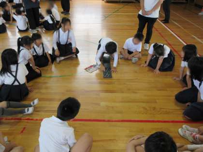 たてわり班ごとに相談しながらクイズを楽しみました。