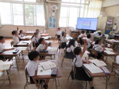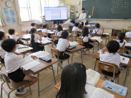ひらがなの学習を進めています。のばす音や点々や丸のついた音を使う言葉を探してたくさん発表できました。