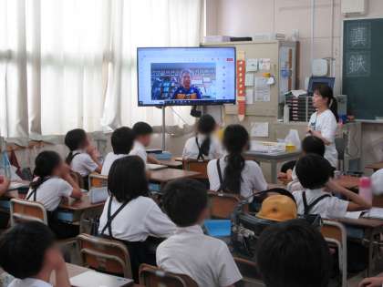 今日の児童朝会は校長室から各教室へ配信を行いました。