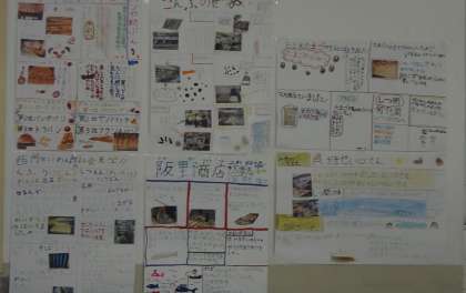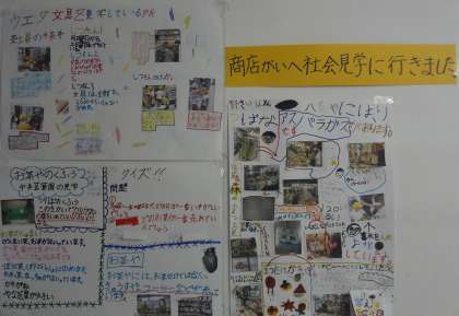 10月23日水曜日、3年生は以前に行った商店街の見学のまとめを見学させていただいたお店ごとに新聞形式にしました。絵あり、写真あり、文章ありの工夫された新聞です。3年生の教室前の廊下に掲示されています。