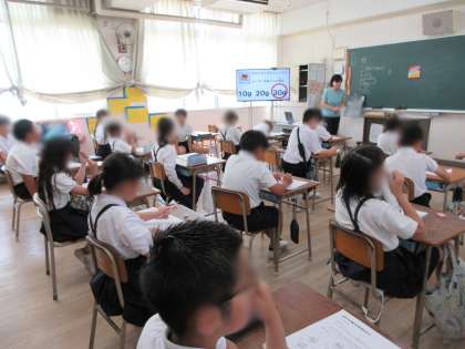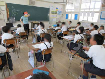 「おやつの食べ方を考えよう」をテーマに、おやつに含まれている油や塩の量を予想しながらおやつの量や食べる時間について考えました。
