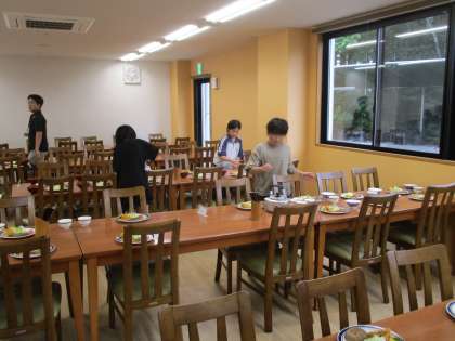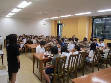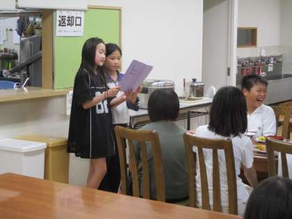 1日目の夕食です。 食事係が事前に準備をし、「いただきます」のあいさつをします。