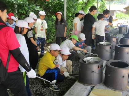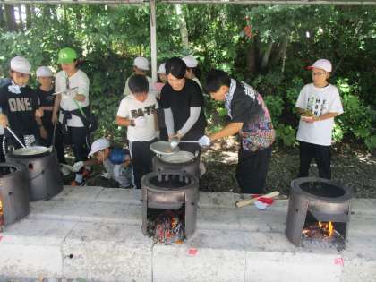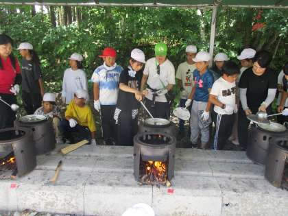 みんなで協力して、「カレー作り」に取り組んでいます。 先生たちもお手伝い中です・・・