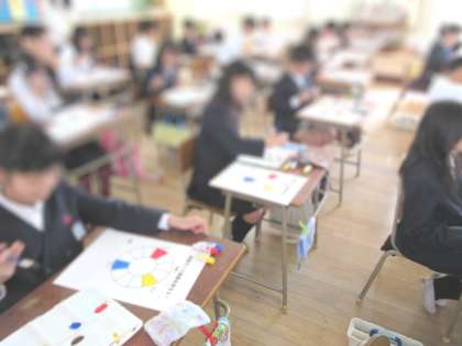 学習参観(5年生) 公開日 2016/04/15 更新日 2016/04/15 お知らせ 図画工作「12色環をつくろう」 青・黄・赤の3色の絵の具を使って12色環をつくり、 色の変化にしかたに気付きました。 いいね(0)