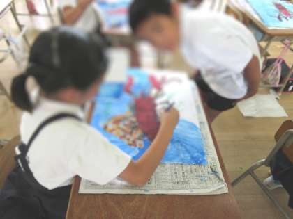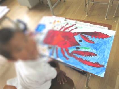 画用紙いっぱいにイキイキとしたザリガニの絵を描いていました。