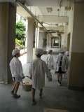 6月10日月曜日、毎日の給食は2名の給食調理員が全校児童288名、教職員26名、合計314名分を作っています。出来上がった給食は、各学級の当番の児童が運びます。みんなの大切な給食です。2人1組で大切に運びます。おいしい給食、今日もごちそうさまでした。