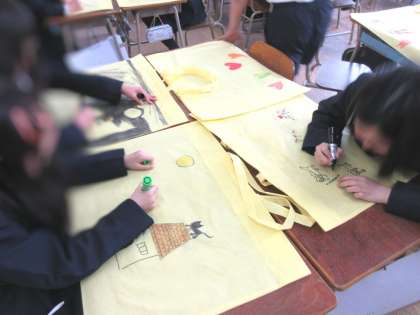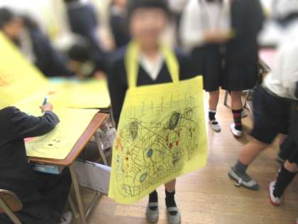 図画工作などでつくった作品を入れて持ち帰るものです。