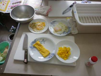 6年生の調理実習です。卵料理と野菜いために挑戦します。